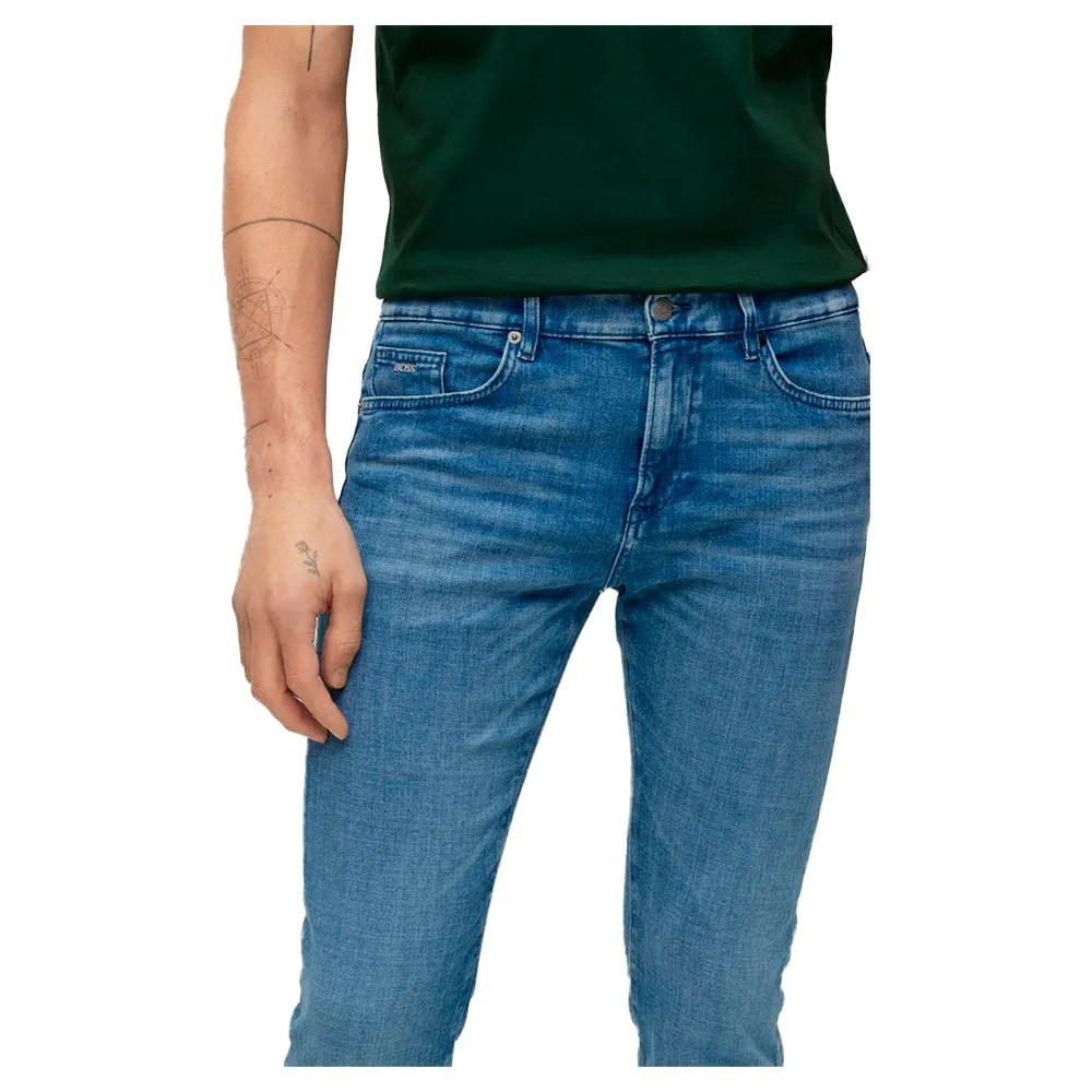 Regular-rise jeans cut to a defined fit in Italian cashmere-touch denim with a blue tone by BOSS Menswear.