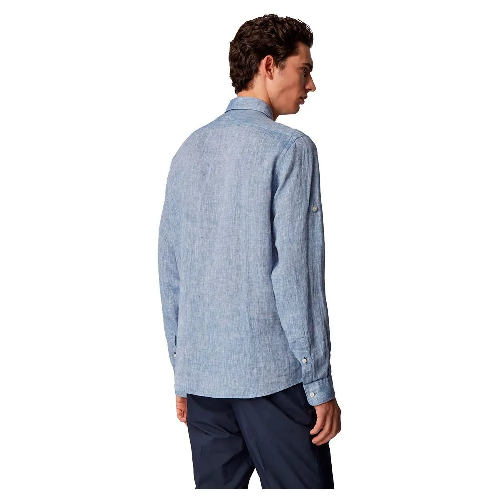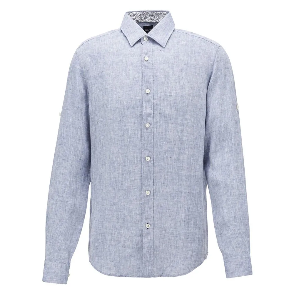 A Summery Shirt In Cooling Linen By Boss Menswear. This Chambray Shirt Is Cut To A Straight Fit And Trimmed With Floral-Print Inner Contrasts For A Modern Touch. Buttons At The Sleeves Allow The Cuffs To Be Rolled Up For A More Casual Look.