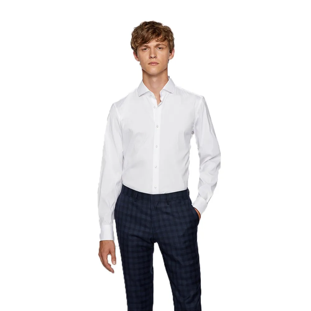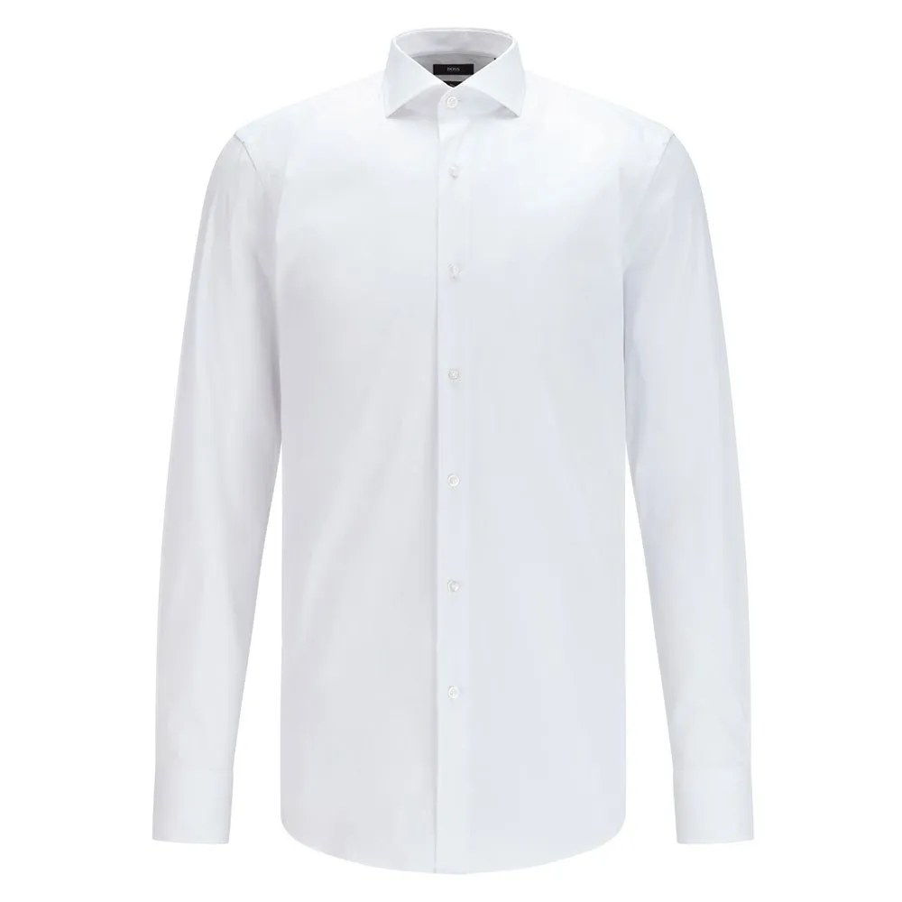 A long-sleeved shirt cut to a slim fit, by BOSS Menswear. This modern shirt is crafted in performance-stretch poplin with a high percentage of cotton for breathable comfort and a super-soft feel against the skin. Ideal for businesswear, this design is finished with an innovative easy-iron treatment.: 100%