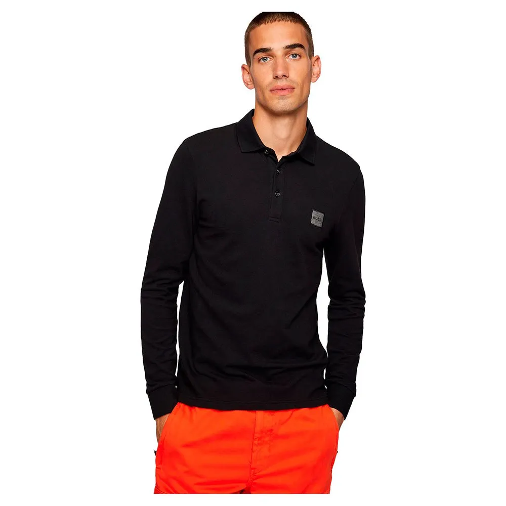 Slim-fit long-sleeved polo shirt with logo badge