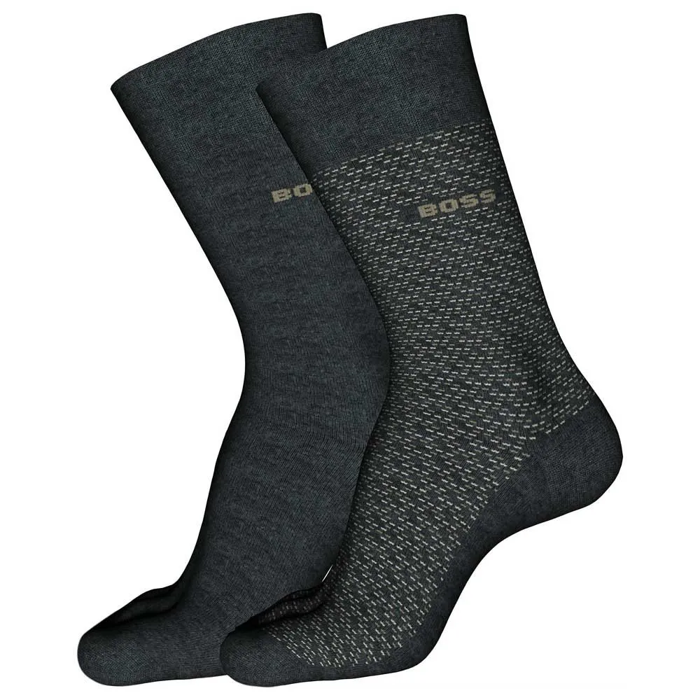 Two pairs of plain and patterned logo socks by boss, cut to a regular length in a cotton-rich blend with stretch.