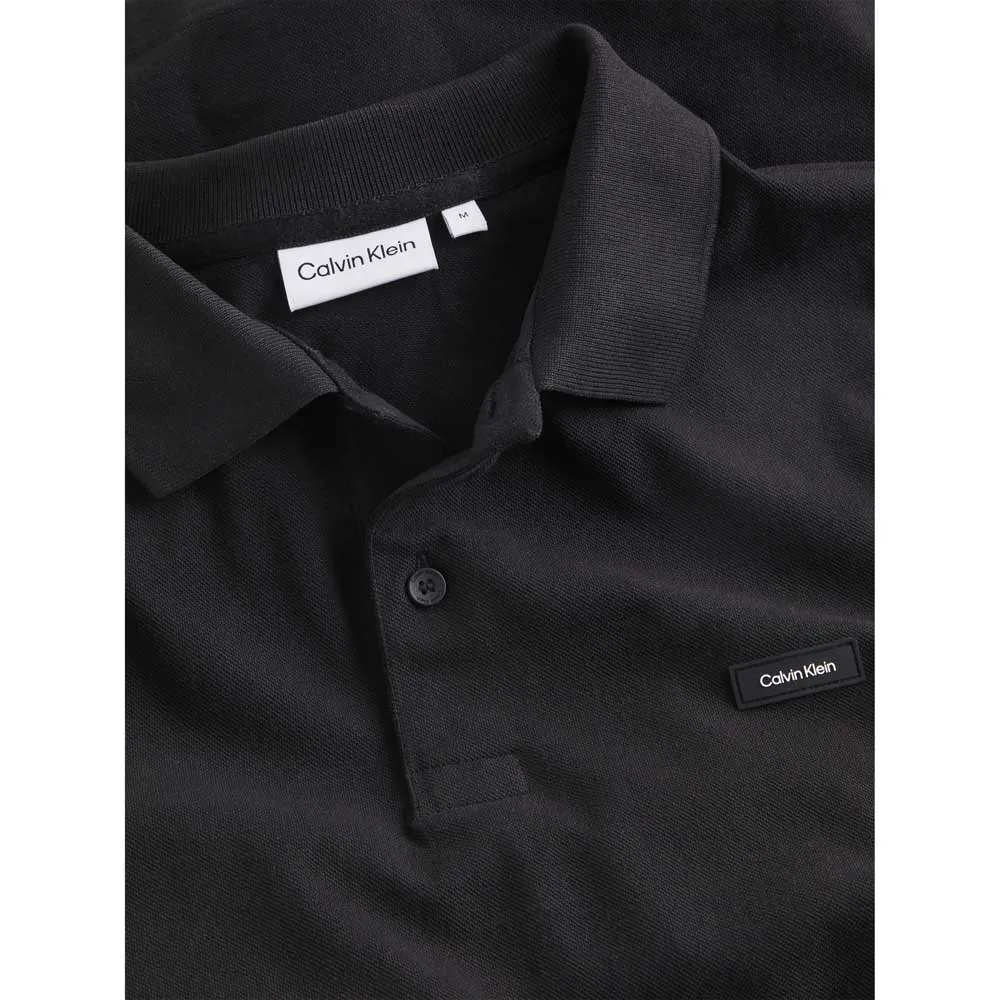 Black slim fit pique polo with rubberized micrologo on the right side of the chest.