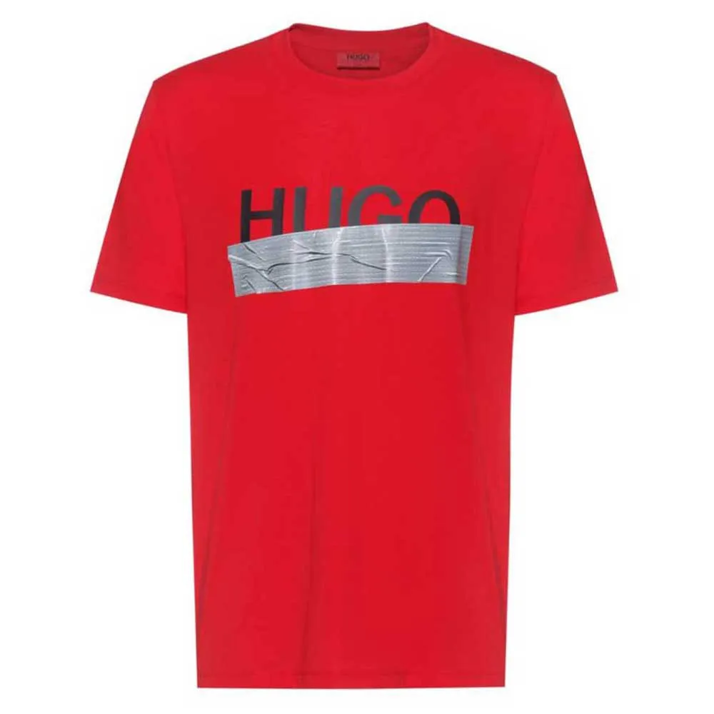 An original T-shirt by HUGO Menswear, featuring new-season artwork made up of a stretch of duct tape running across the iconic logo. Styled for a regular fit, this high-impact piece is created in cotton jersey and topped with a crew neckline. Give urban looks an inventive touch with this T-shirt.