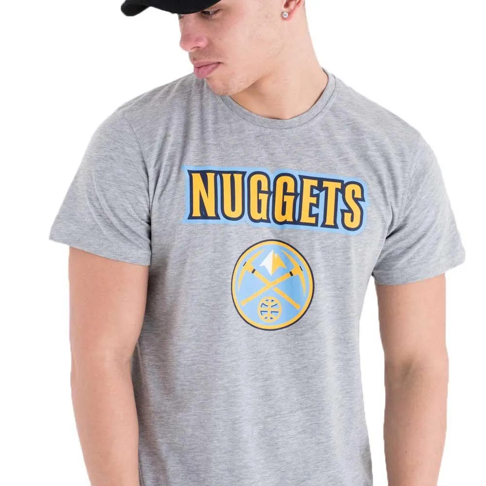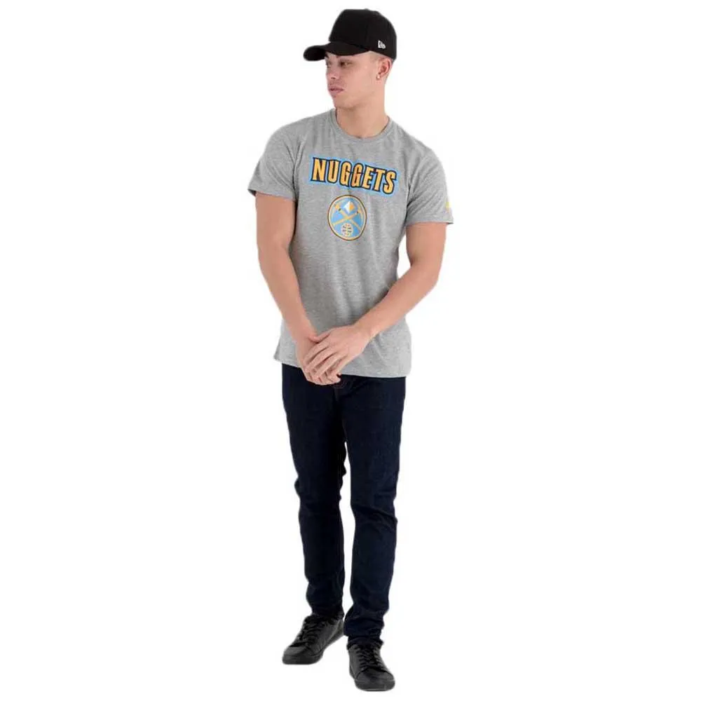 100% cotton jersey 160 gsm tee featuring Denver Nuggets team wordmark and logo pigment print to center front and New Era Flag direct embroidery to sleeve.