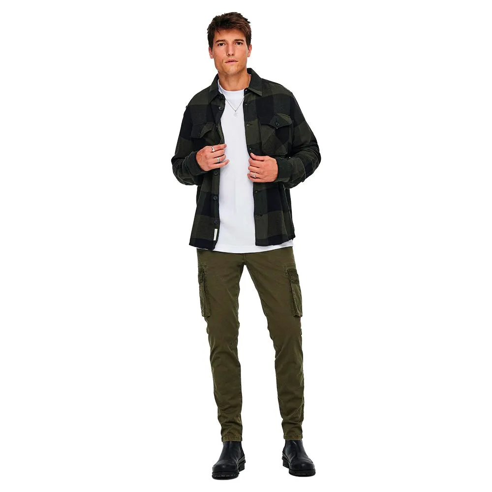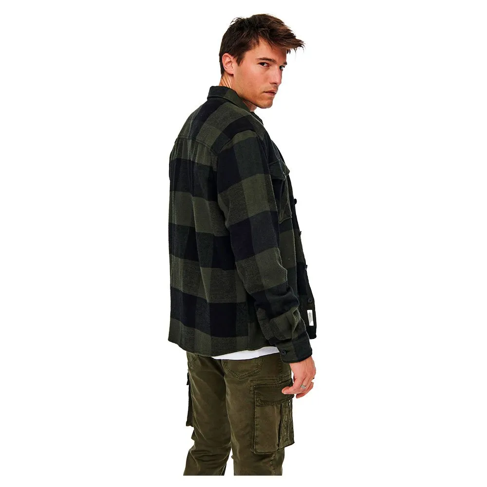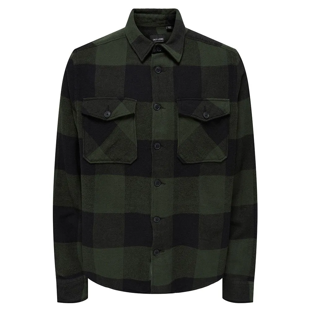 Mens ls heavy y/d gingham checked flannel overshirt.