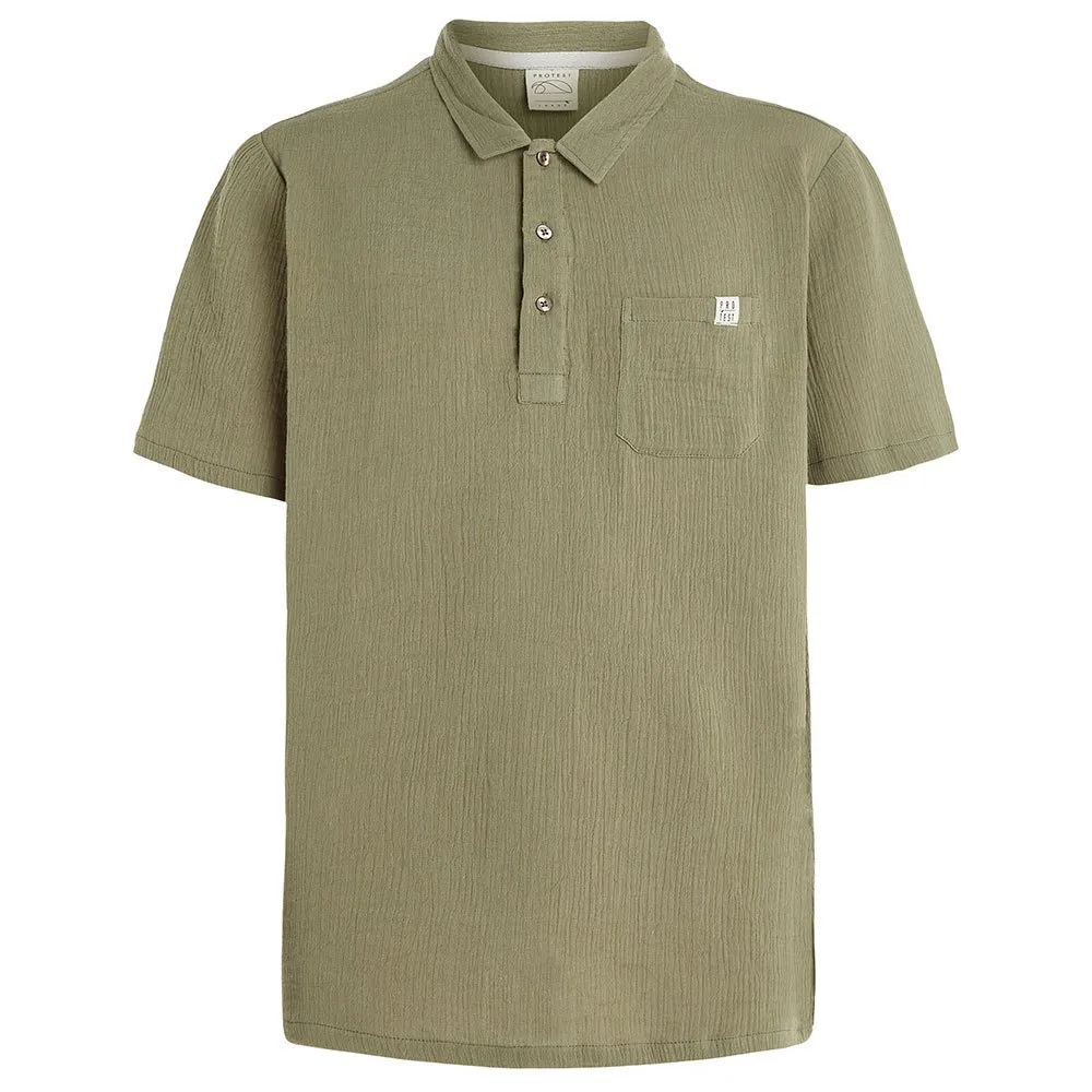 The polo collar, patch pocket on the chest, and subtle Protest label complete the picture.