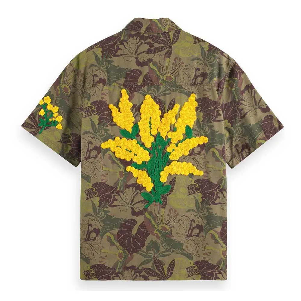 Printed Short sleeve twill shirt with special embroideries 100% Cotton – Organic.