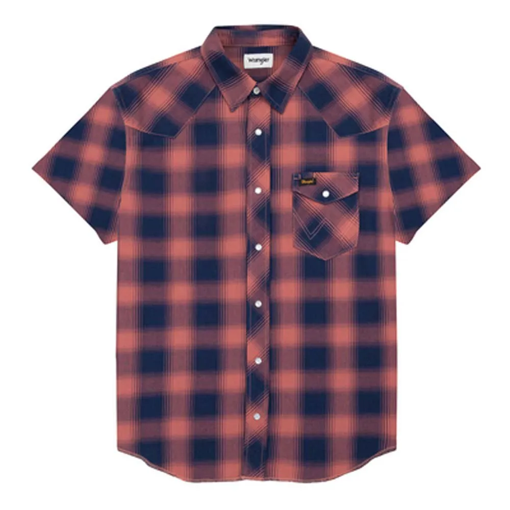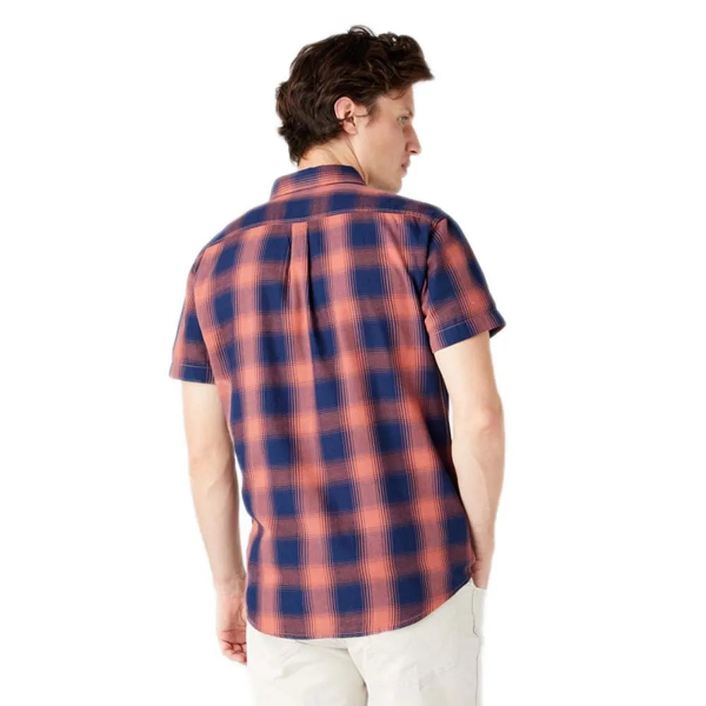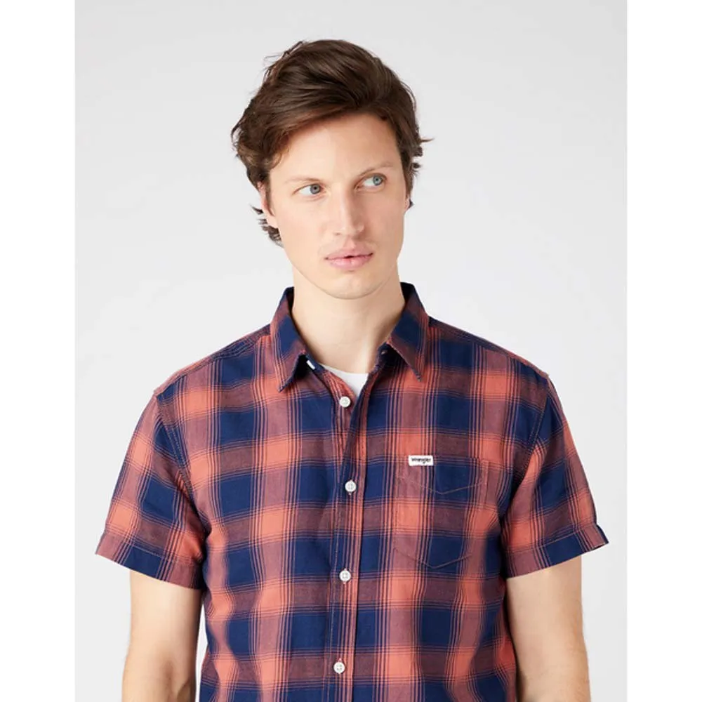 Keep it simple with the classic profile of this short-sleeve one-pocket shirt in a plaid print, featuring a pointed collar and contrasting buttons.